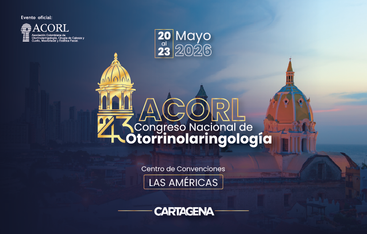 43° Congreso Nacional de Otorrinolaringología + Añadir Google Calendar + exportación iCal / Outlook 00 días 00 horas 00 minutos 00 segundos Fecha May 20 - 23 2026 Más Información Leer más Localización Centro de Convenciones Hotel las Américas Cartagena Cartagena, Colombia Filtro por Sociedad ASOCIACIÓN COLOMBIANA DE OTORRINOLARINGOLOGIA, CIRUGIA DE CABEZA Y CUELLO, MAXILOFACIAL Y ESTETICA FACIAL Teléfono 619 48 09 / 619 47 02 Correo electrónico acorl@acorl.org.co Web https://www.acorl.org.co REGISTRO Compartir este evento